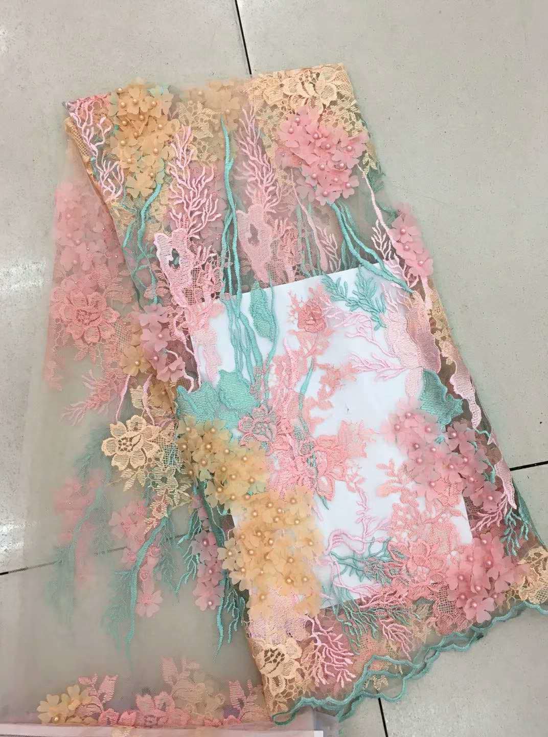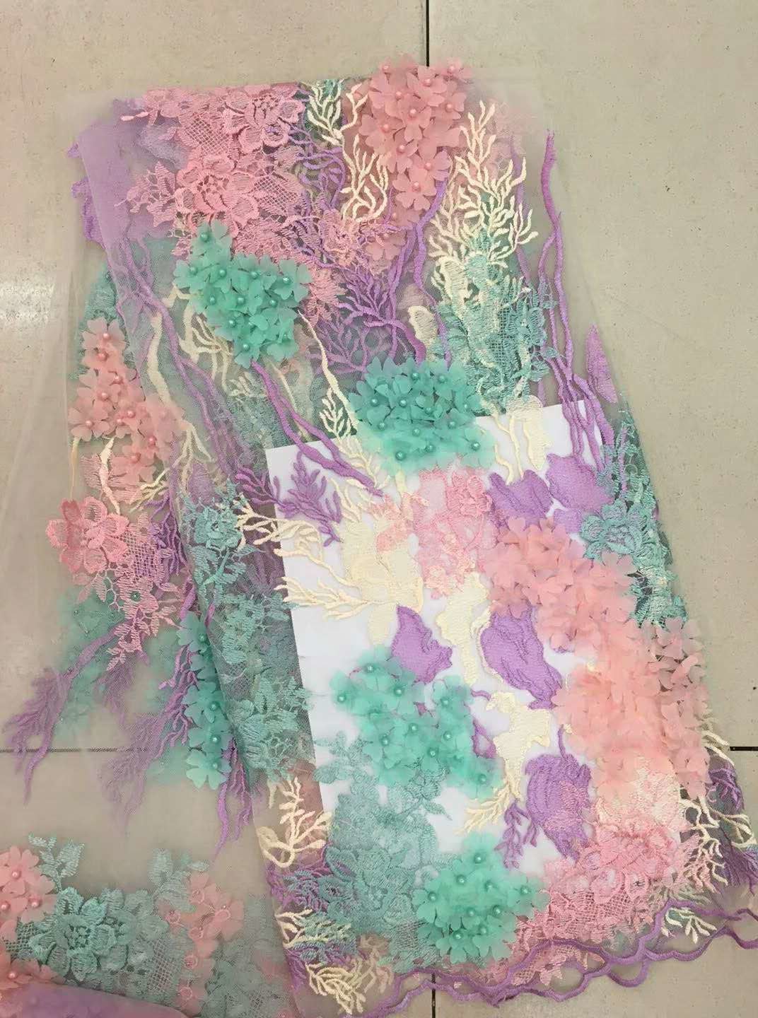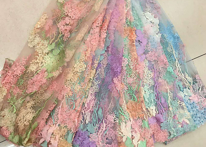 ont choisi des matériaux naturels, sans pollution et de haute qualité tissu en dentelle perlée 3D, tissu brodé floral multicolore à festons pour jupes