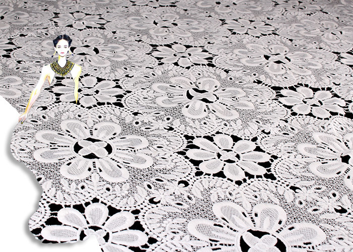 Tissu en dentelle de coton brodé guipure de Venise, couleur DTM sans azo