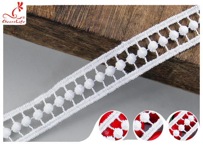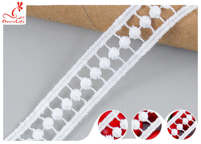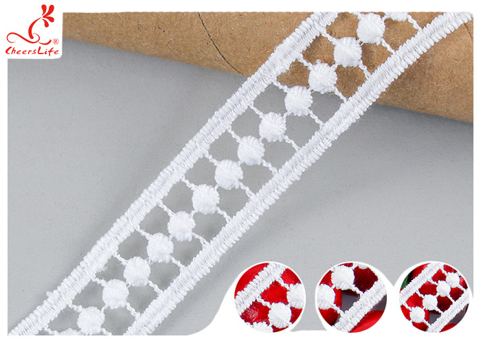 2 cm de dentelle brodée blanche broderie avec Poly Milk Silk Pass OEKO TEX 100 avec délicat, bonne précision et clair,Inspection à 100%.