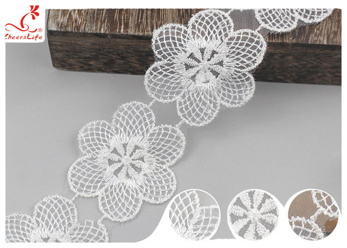 Bordure en dentelle de tulle floral brodé avec maille de nylon, teinture sans azo, passe OEKO-TEX